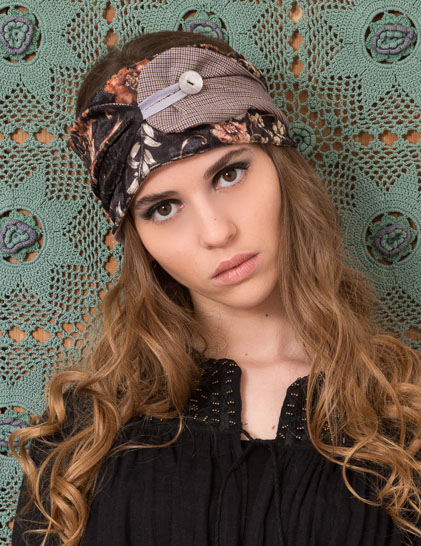 Bandeau tzigane, pied de poule, réversible. Peut aussi se porter en col ou ceinture.