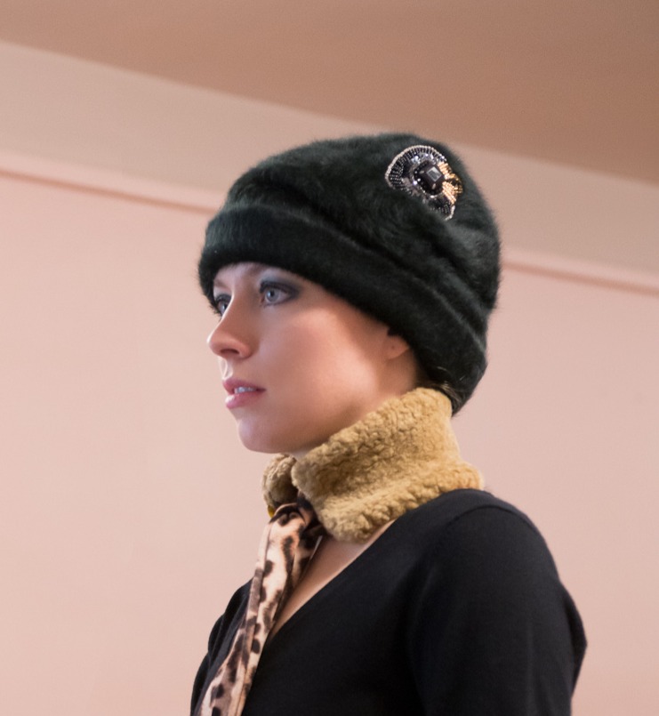 Bonnet en angora Heart noir avec coeur brodé sur le côté. 100% angora. Fait à la main en France.