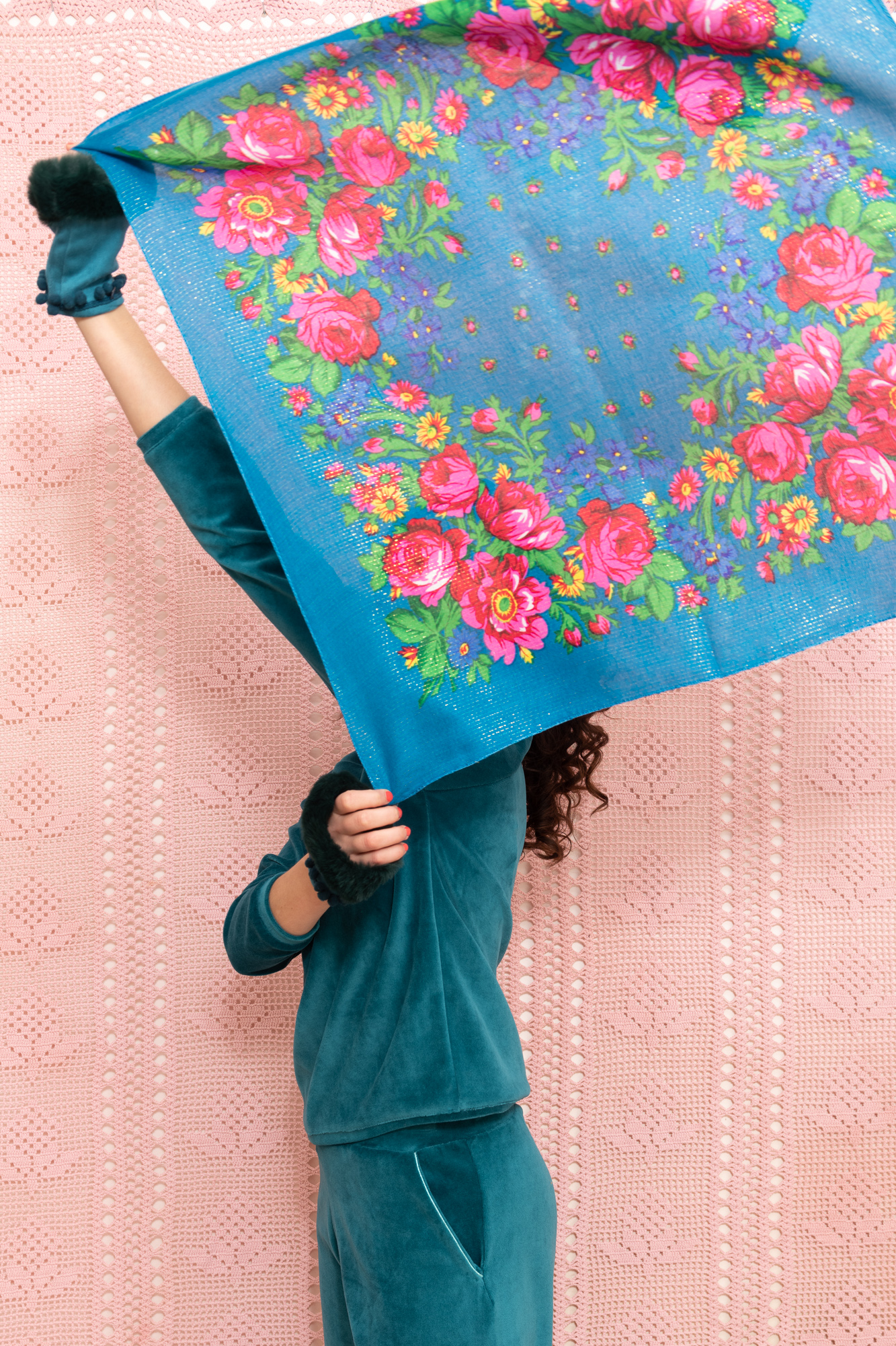 Foulard Bohème bleu à fleurs.