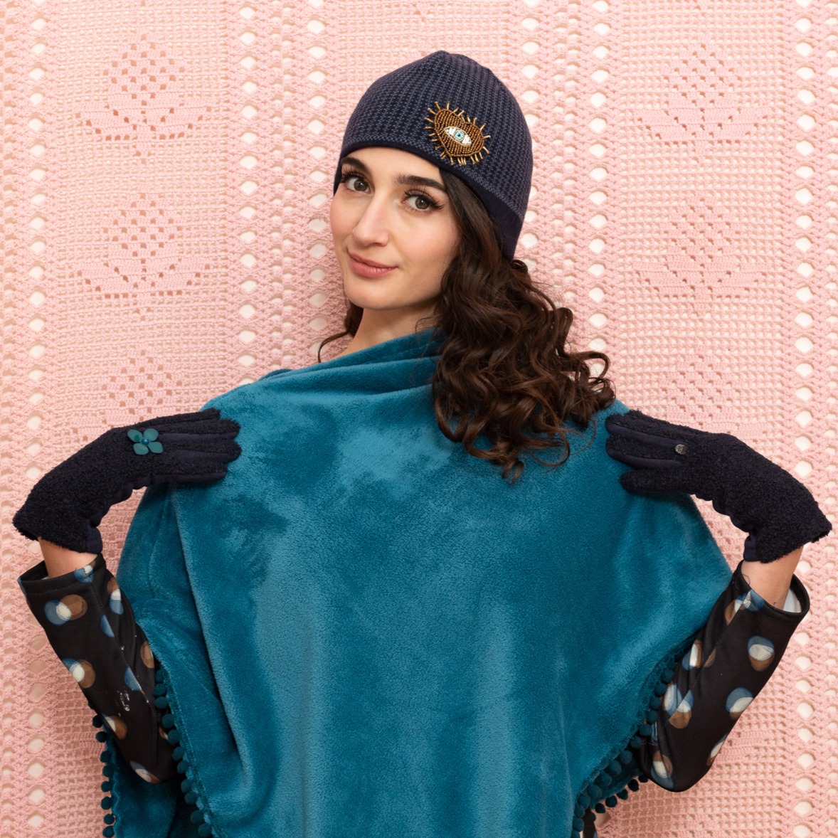 Gant tactile, taille unique et doublure polaire. Fleur sur la main droite, sequin en nacre gravé Manon Martin sur la main gauche. Fabriqué à Marseille.