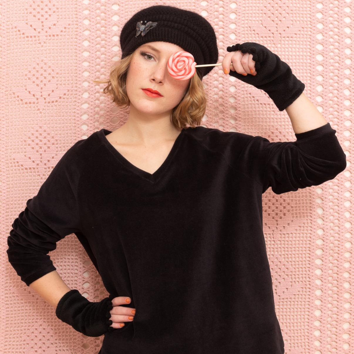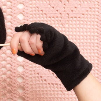 Mitaine Jazz avec pompons et nacre gravée. Doublure polaire. Fabriqué à Marseille. Taille unique. Tissu : 100 % Polyester.