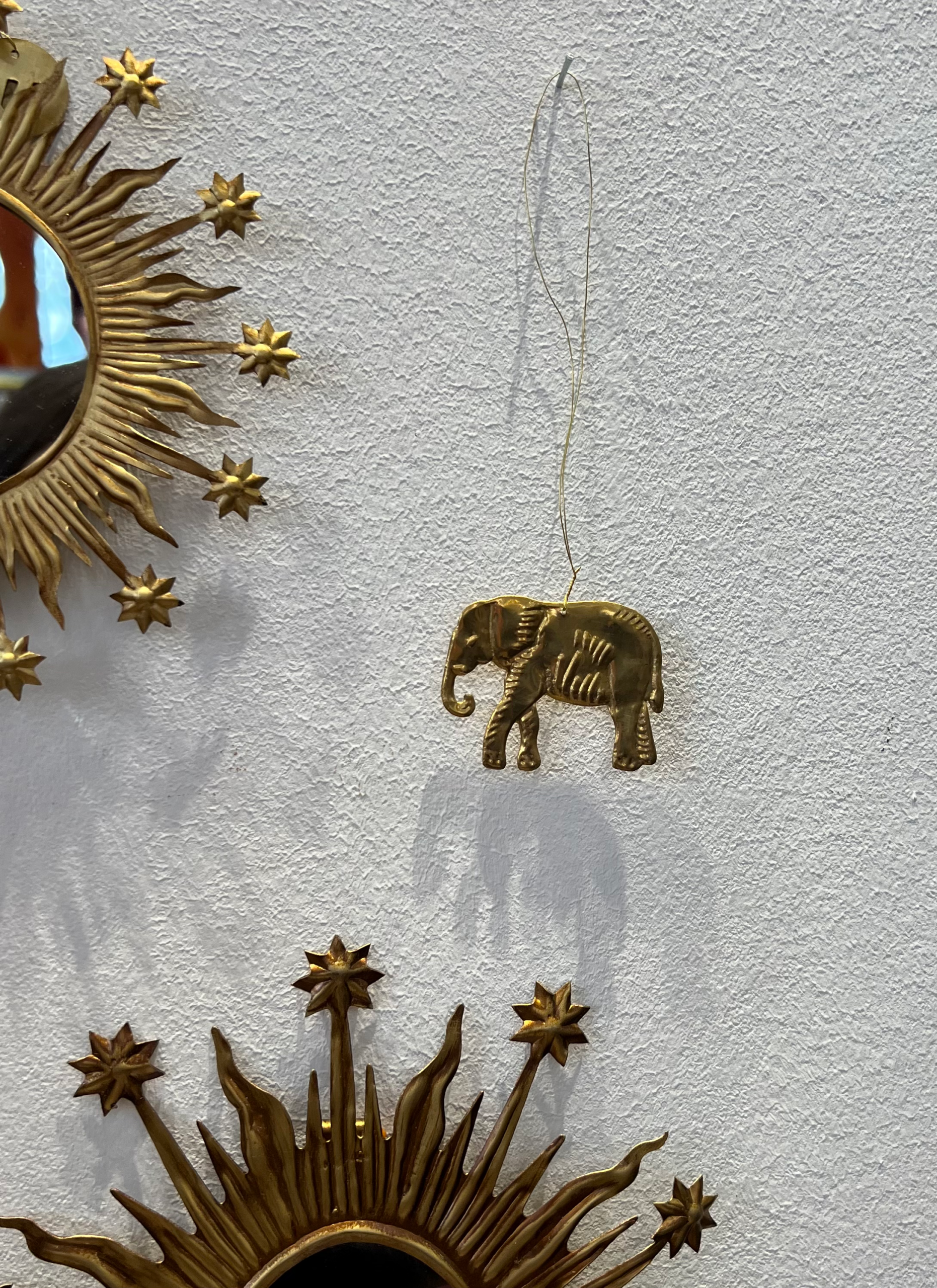 Adorable pendentif décoratif en forme d’éléphant, fabriqué à la main en laiton en Inde. Ce pendentif est parfait pour apporter une subtile touche dorée à votre intérieur !