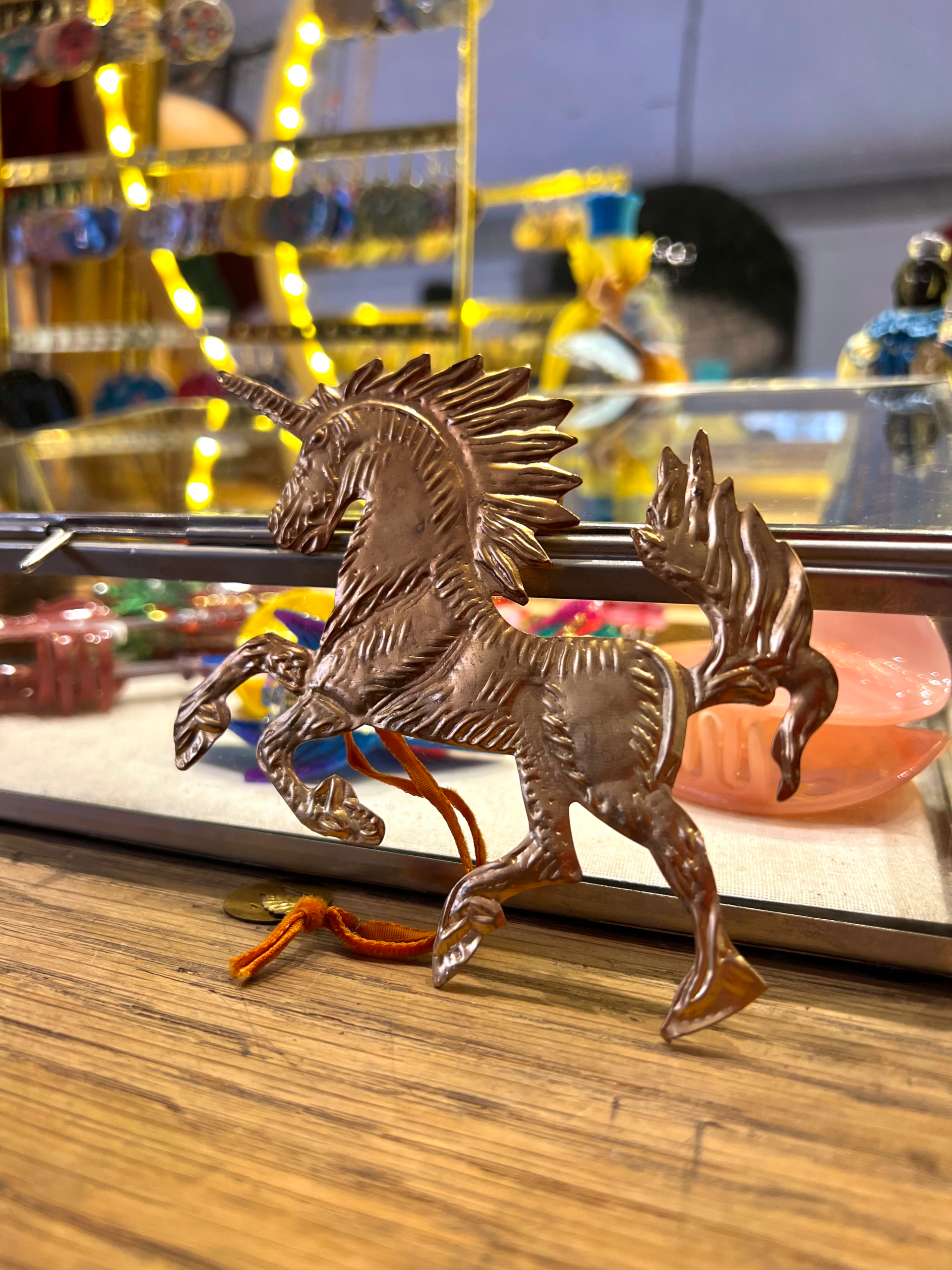 Découvrez la magie des possibles avec cet ornement licorne artisanal. Réalisé en métal, c’est une pièce fantaisiste et inspirante qui apporte charme et émerveillement à tout intérieur.