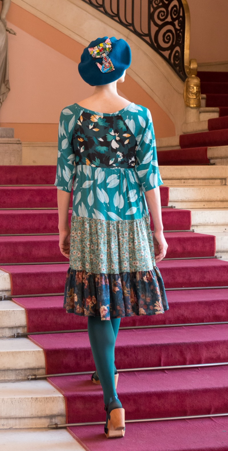 Robe Roma lotus col rond. Manches raglan 3/4. Fait main en France.